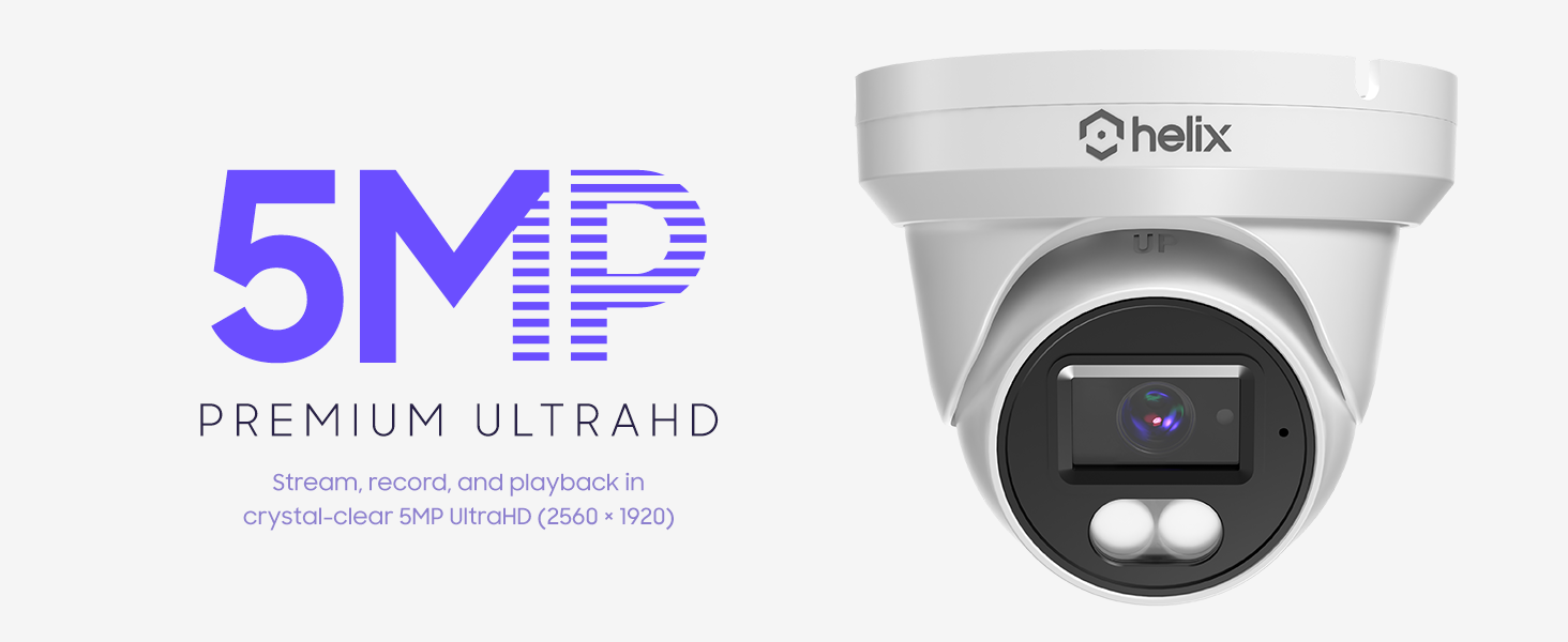 Helix 5MP Security AI IP PoE Camera, 98ft Night Color, Human Detection, NDAA Compliant, Indoor Outdoor Surveillance Turret, Built in Mic, Support 256GB MicroSD, Deterrent, HLX-IP5M-T103EW-AI